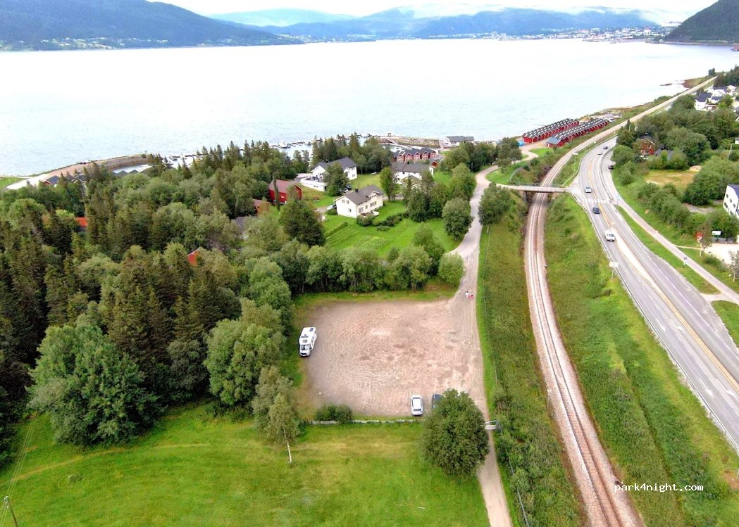 Für einen Platz neben der Straße, also schnell von der E6 auf der Durchreise zu erreichen und damit auch in der Nähe der Eisenbahn-ein schöner Platz. Hier darf keine absolute Ruhe erwartet werden. Ein Stellplatz zum Schlafen und für einen netten Aufenthalt am Fjord am Abend. Ca. 50m am Meer findet man ein kleines Häuschen mit sauberen Toiletten&Grillstelle.