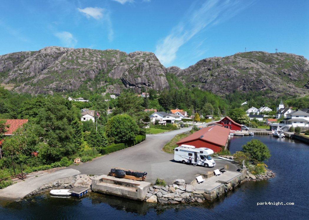 Petit parking plat au bord de l’eau avec vue magnifique sur le fjord vers la mer. Aucune commodité mais joli cadre et calme garantis !