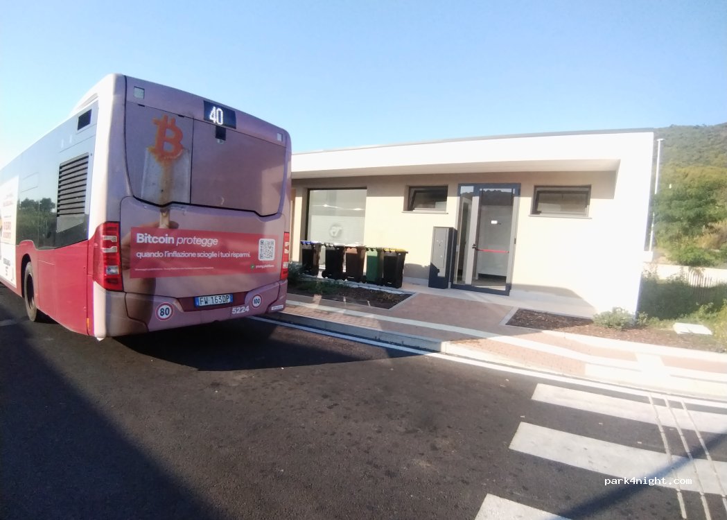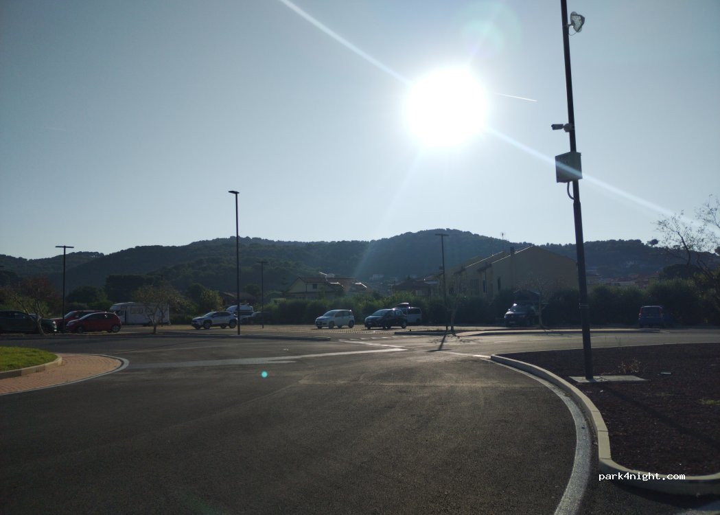 Andora Marina station parking, very quiet and video-monitored. Public toilets available.