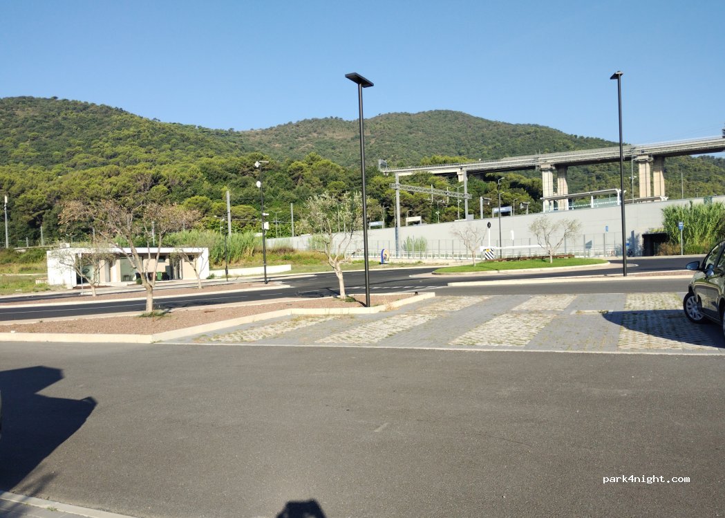 Parking de la gare d'Andora Marina, très calme et vidéo-surveillé. présence de toilettes publiques.