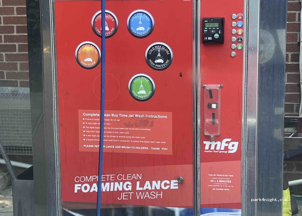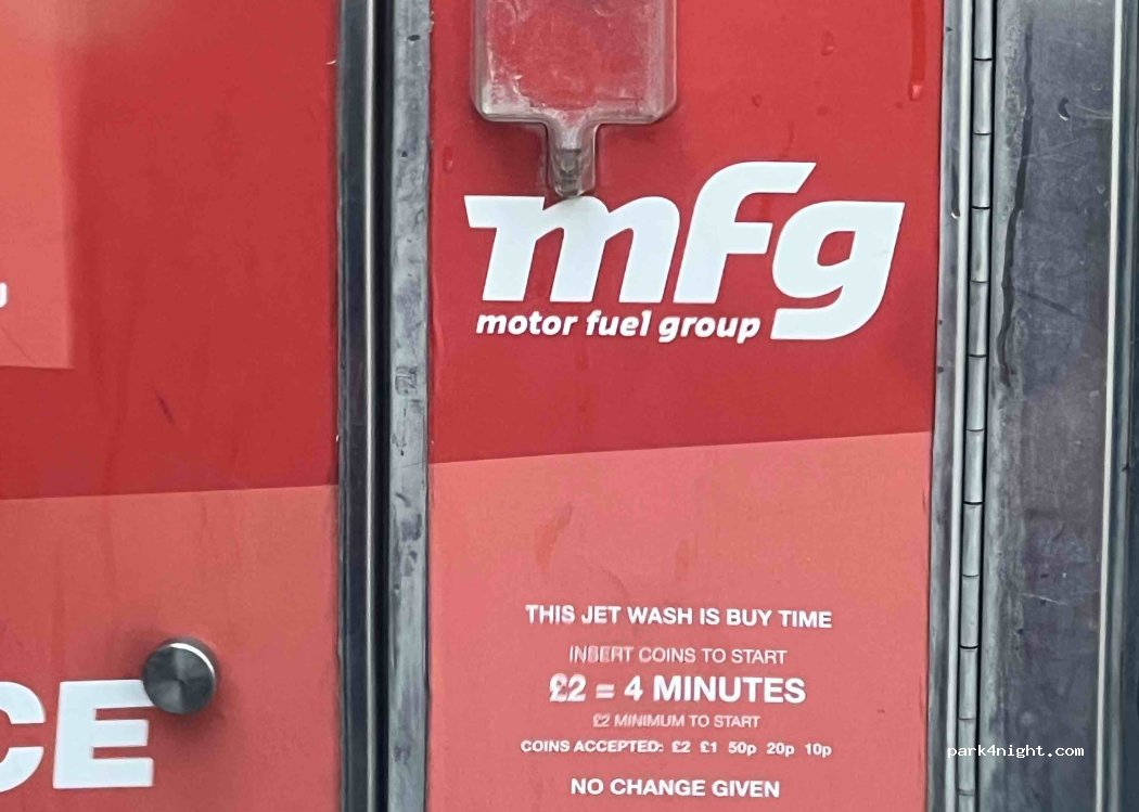 We brought a drink from the shop and then asked about the water tap. The guy seemed unsure if allowed but said yes anyway. We also used the car wash. It was 2 pound for 4 mins. We paid twice for our xlwb camper