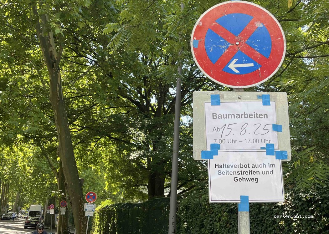 Das Parken ist seit dem 15. August von 7:00 bis 17:00 Uhr wegen Baumarbeiten verboten.