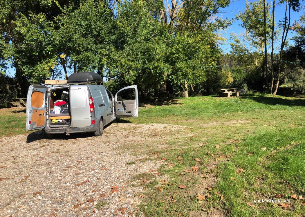 Port des Rêves entre el Garona y el canal, terreno muy grande, posible para autocaravanas para pasar solo 1 noche respetando este lugar. Junto a la vía verde. Rincón muy agradable. No confundir con zona de acampada. Respetar a los ciclistas. 5 mesas y 2 papeleras.