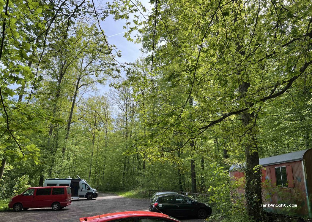 C'est également le géocaching qui nous a amené ici ! Parking ombragé idéal le temps d'une balade. Nestor (2.05m de large, 5.99m de long) n'a eu aucun problème pour accéder au parking. Le cadre est très agréable, en revanche le bruit de la circulation est trop présent pour que nous y passions la nuit.