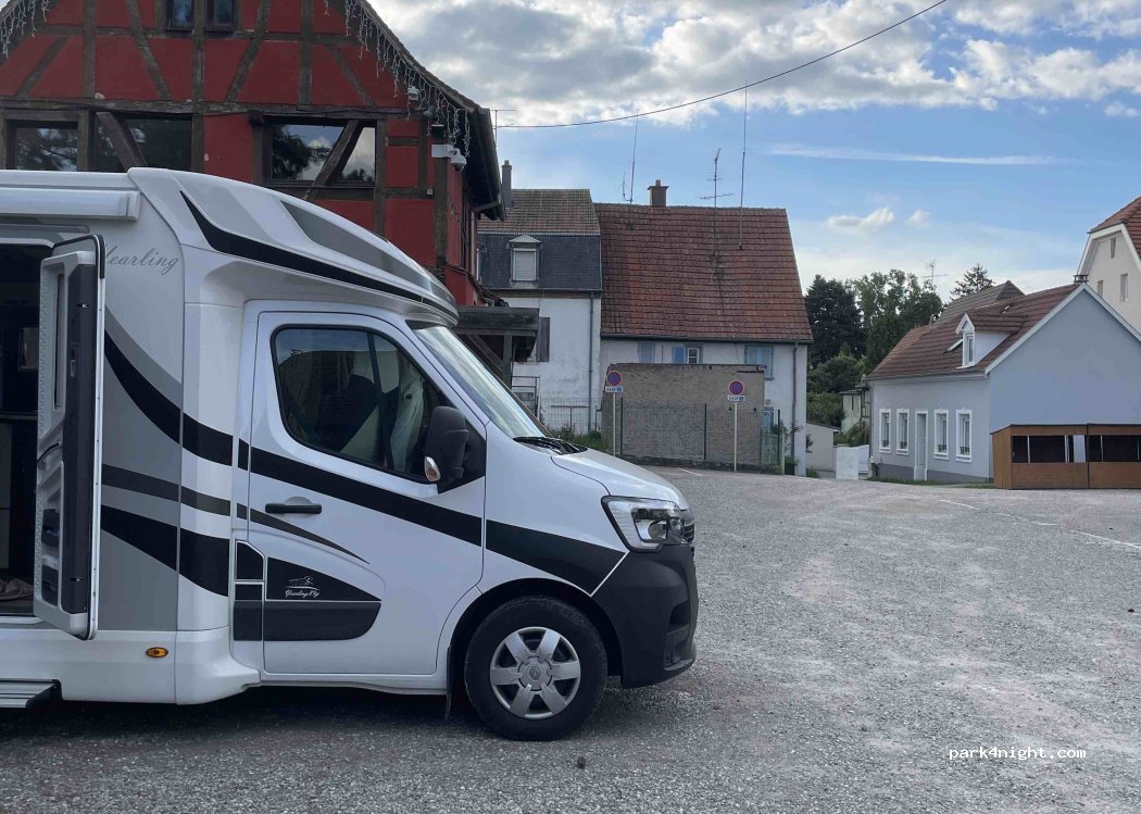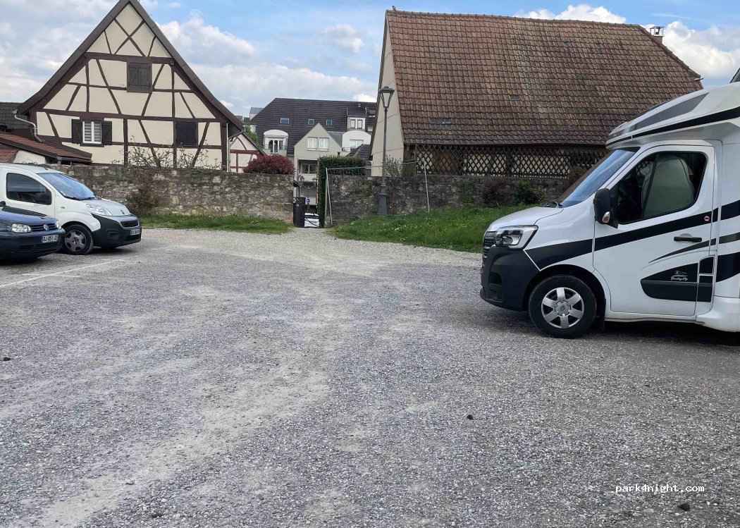 perfect for a stop over night. 10 min from Mulhouse by bike, 30 on foot. when we asked people who were around if they knew whether it was allowed to stay for a night no one could say.the ones passing by however were friendly. the lamp on the parking stays lit for the whole night, however that did not bother us. Respect the space and get rid of the waste in the bins nearby.