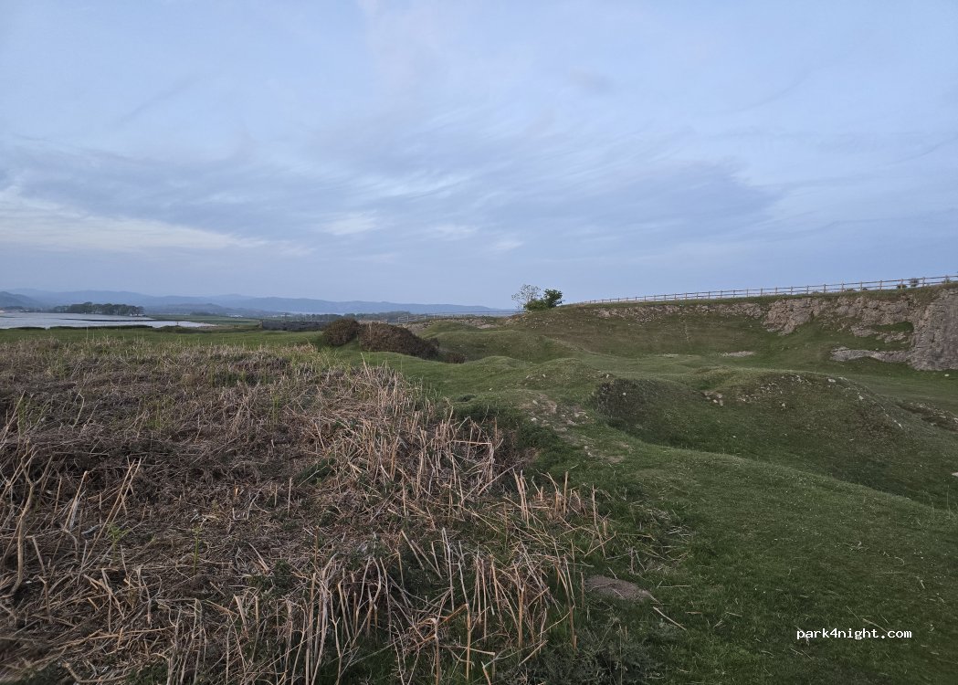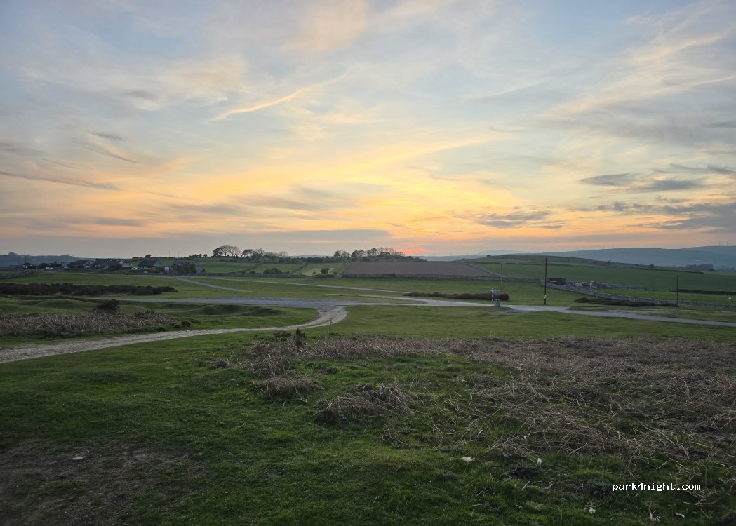 Fantastic place on large area of grass common, with amazing views of south Lakeland Fells and the lighthouse memorial above Ulverston. End of a very hot June day so sat outside until 10.30 pm. But incredibly noisy with tractors collecting loads of cut grass passing every 5 minutes, and plenty of motorbikes too. Spoilt an otherwise perfect place.