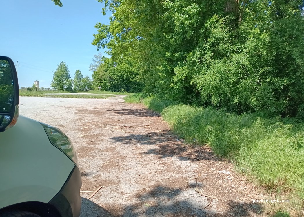 Aparcamiento muy tranquilo y espacioso entre bosque y carretera poco transitada.