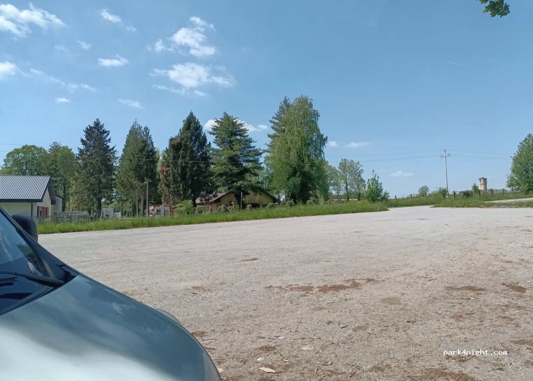 Sehr ruhiger und geräumiger Parkplatz zwischen Wald und wenig befahrener Straße