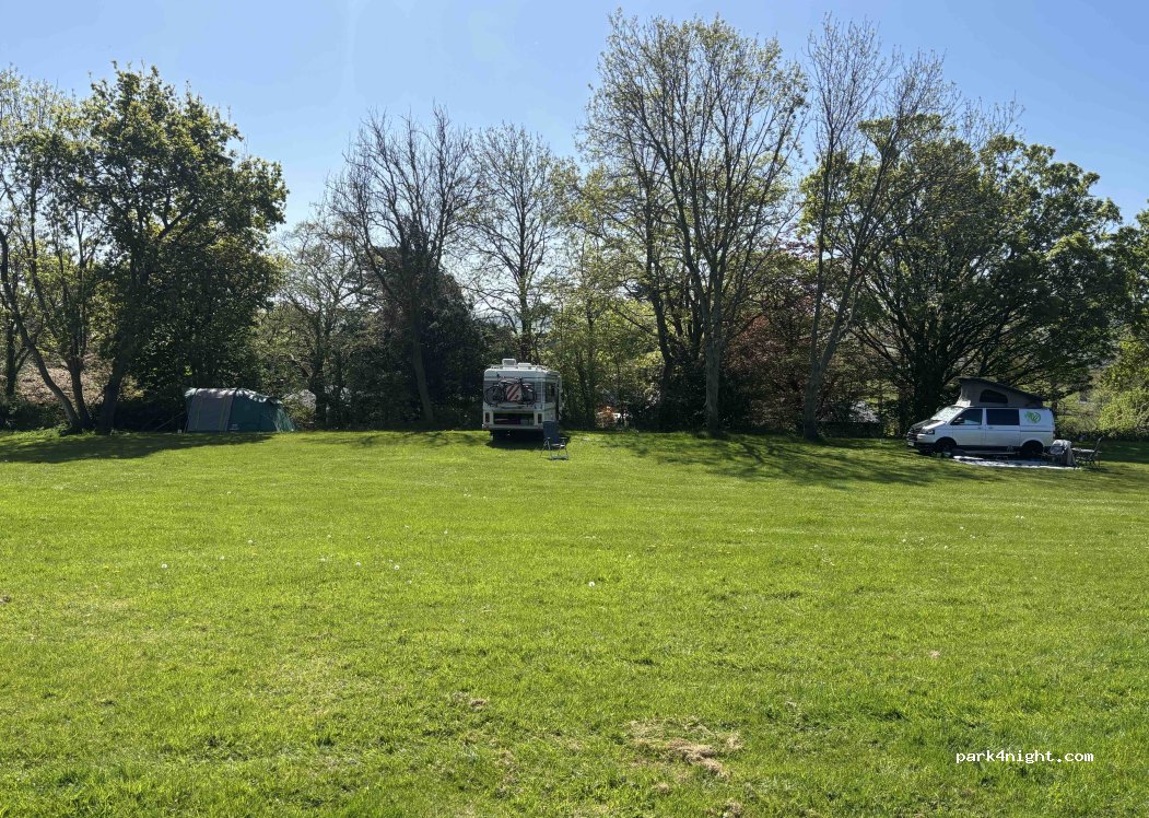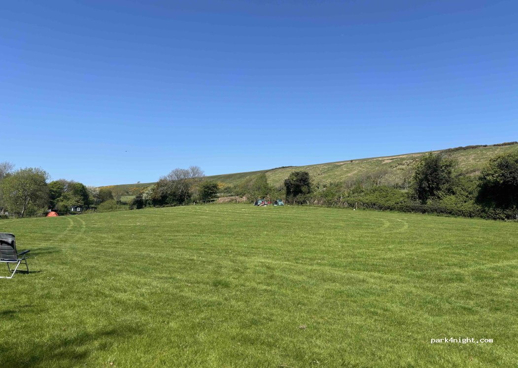 Schöne Wiese ohne Stromanschluss. Bei Ankunft und vor der Platzsuche , Cath anrufen. Sie weist einen pitch zu und kommt später 15 Pfund bar kassieren. Wer top Duschen und Toiletten erwartet ist hier falsch. Dennoch sauber sind sie. Wenig los im September. Schöne Radtouren von hier möglich, ebenso direkte Wanderrouten oberhalb des Platzes. Ach ja duschen kostet 20 pence..., der pub nebenan ist ok.