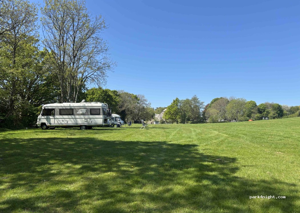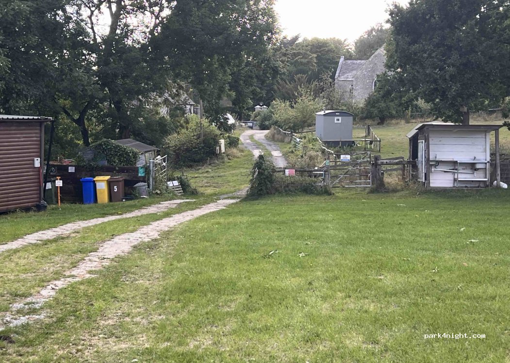 Camping pequeño, encantador y tranquilo. Bar para comer a 300 m. No comimos. A 2 km del Castillo de Corfe. Llamar a Cath al llegar o con antelación.
