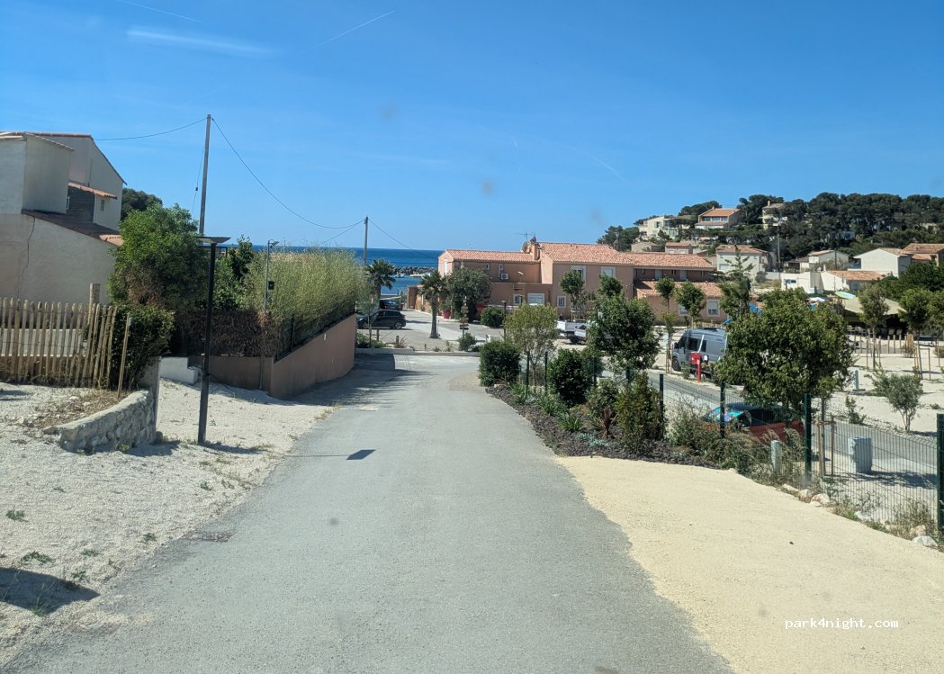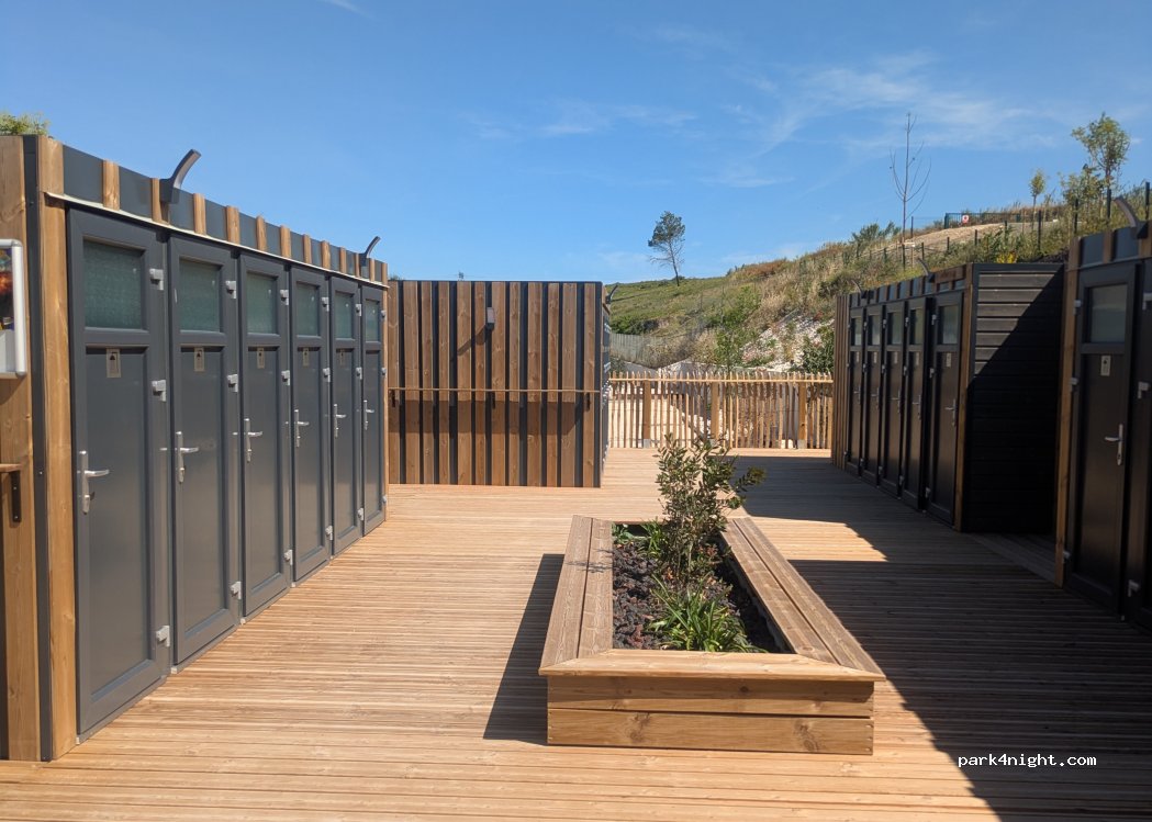 You'll also find a grey and black water disposal point (square cast iron plate) with a hose for filling your tanks. Restrooms only (please do not wash dishes inside, nor shave/use the toilet to keep the premises clean).