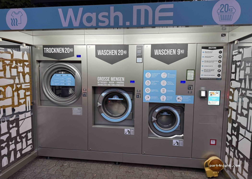 2 x Waschmaschinen für 9kg und 20kg und 1 Trockner für max. 20kg Bezahlung erfolgt per Karte. An der angrenzenden Tankstelle können während der Öffnungszeiten auch Gasflaschen getauscht werden.