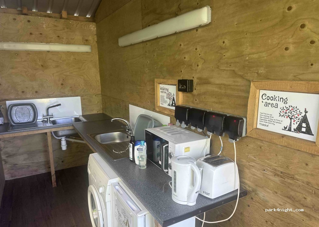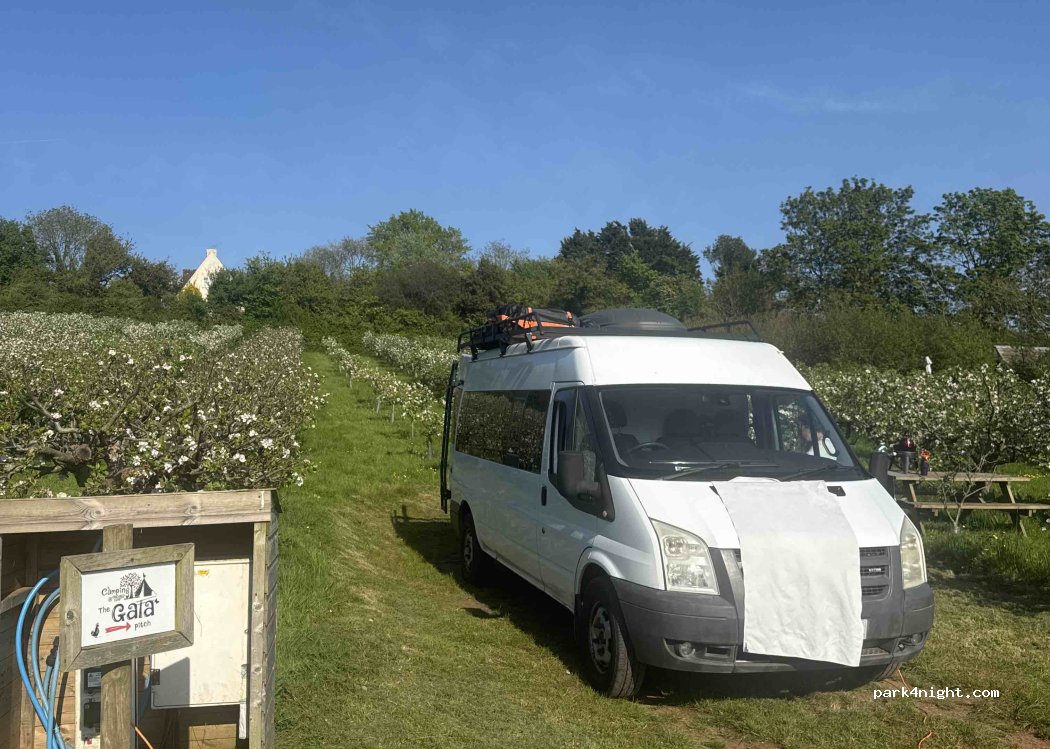 Great place, which is open all year, with 5 nice pitches nesseled among the apple trees for vans, with electric hookups. There is a toilet block with, outdoor kitchen area, which has kettle,toaster, fridge washing machine etc, which is really well maintained. and clean.