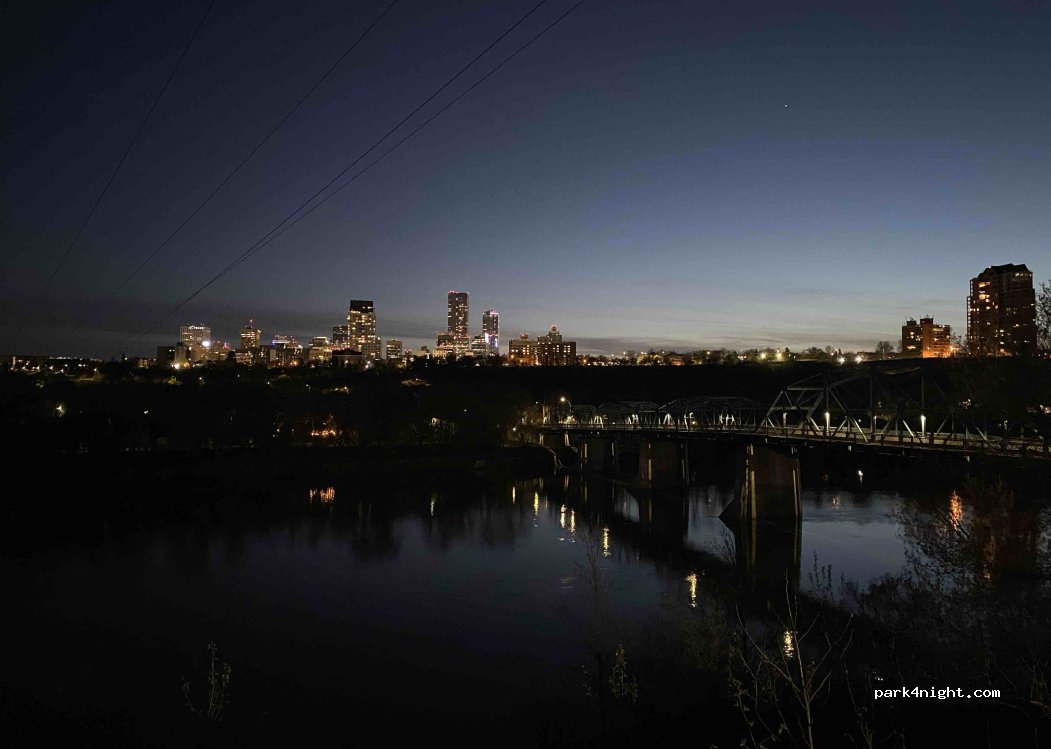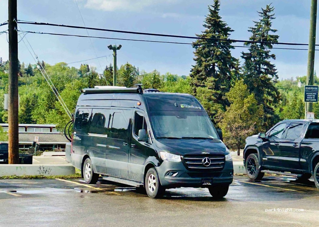 Beau grand stationnement, nous nous sommes mis sur la partie en haut . Nous avons eu un peu peur de nous faire déranger , étant donné que nous étions vendredi. En effet , il y a eu quelques jeunes avec leur voiture , mais autour de 21h , ils ont tous quitté et nous avons eu une nuit calme et agréable. Très pratique pour visiter Edmonton !