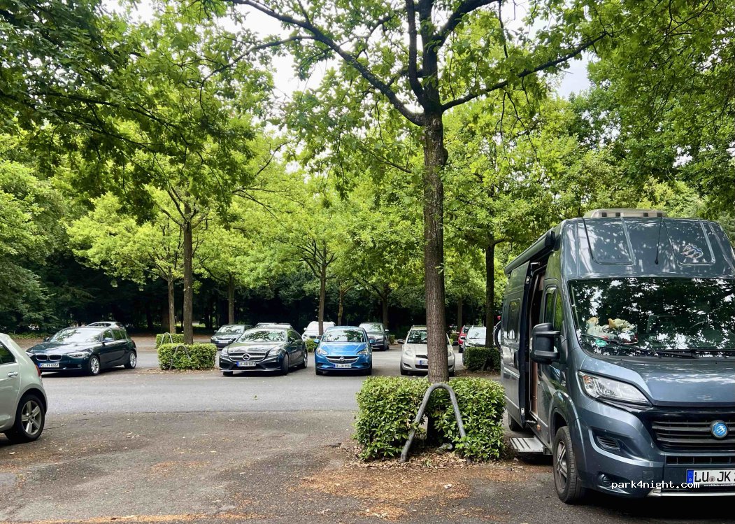 Sehr großer Parkplatz vor dem Schloss Berge. Nachts relativ ruhig. Morgens nerven die Schwäne