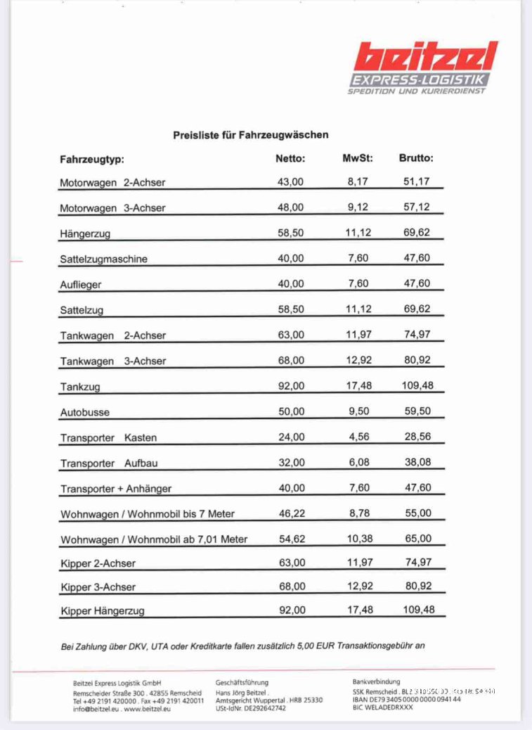 Se aceptan pagos con tarjeta y tarjetas de combustible DKV y UTA.