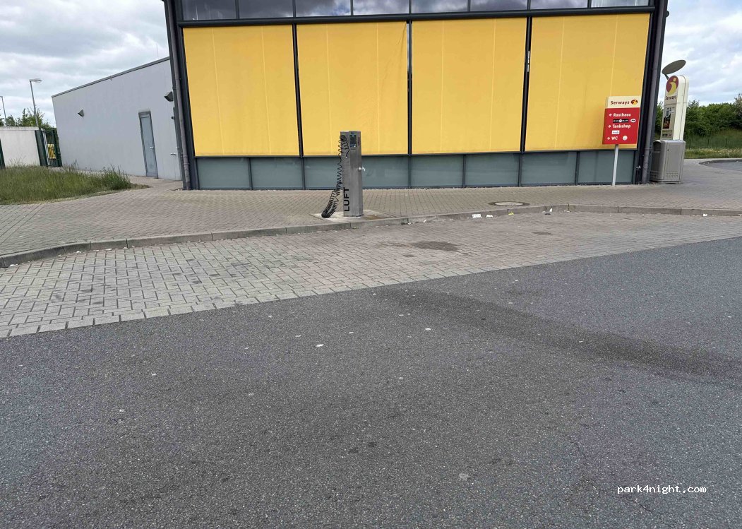 Ein Wasserhahn direkt in die Luftsäule der Tankstelle eingebaut. Funktioniert einwandfrei und für den Notfall ganz nützlich.