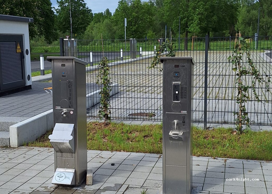Sauber, gut erreichbar, nur ganz wenige Minuten von der Autobahn. Ver- Und Entsorgung modern und sauber, Versorgung 1l Wasser = 1 ct, Entsorgung kostenlos. Parken 8€ / 24h, zahlbar per Münzen am Automaten oder per Girocard (nur kontaktlos)