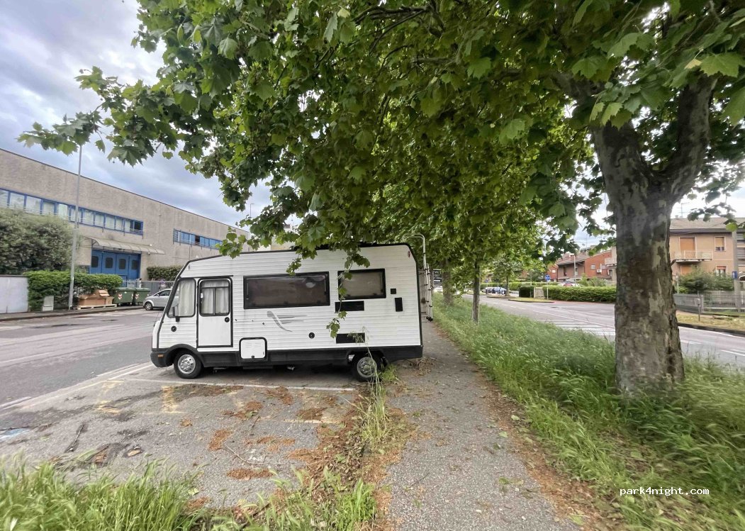 Ampi parcheggi per camper anche di 7/8 metri. Ristorante e pizzeria nelle vicinanze, supermercato, bar tabacchi, meccanico, la sera può essere un po' rumoroso ma fino a mezzanotte poi chiudono.