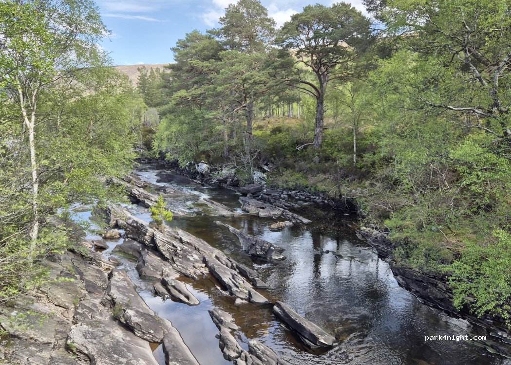 very nice place, good for 1 small campervan. Just before the bridge at the right side. River is accessible if you want to swim.