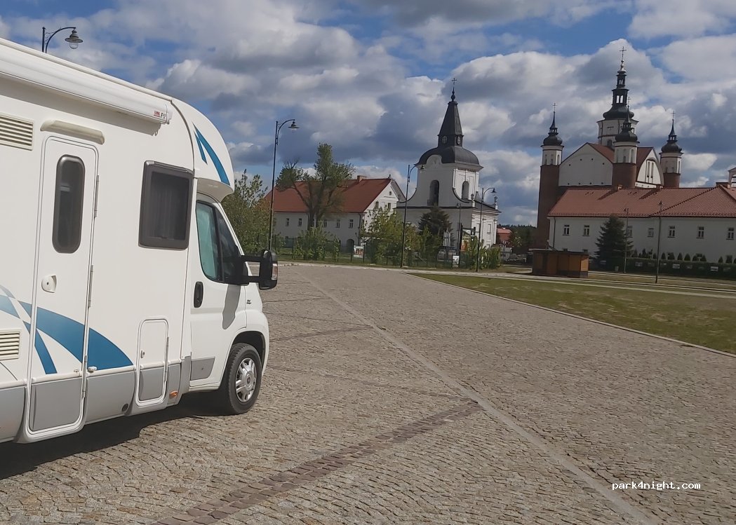 Large parking lot at the roundabout opposite the monastery. Cars, campers, buses and trucks can park here. There is also a toilet.