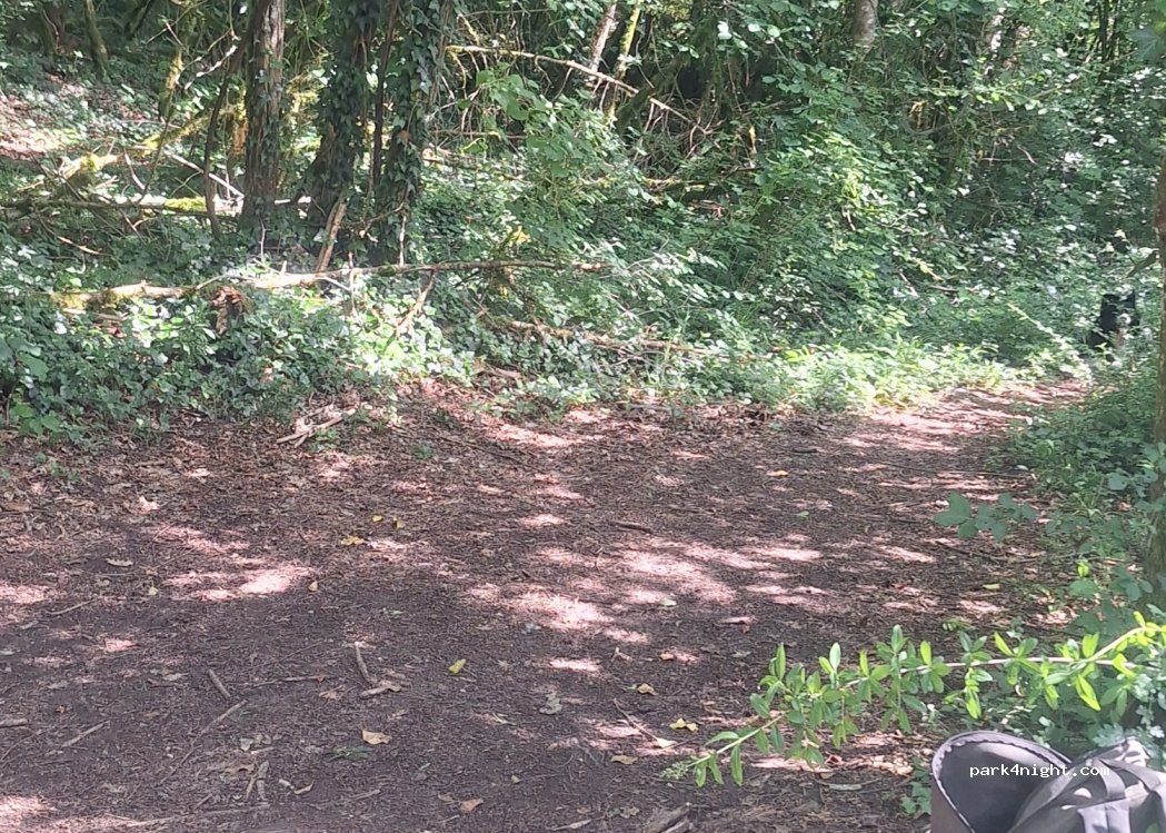 Small square above Virignan in the forest. Accessible path with space for two vans or camper vans.