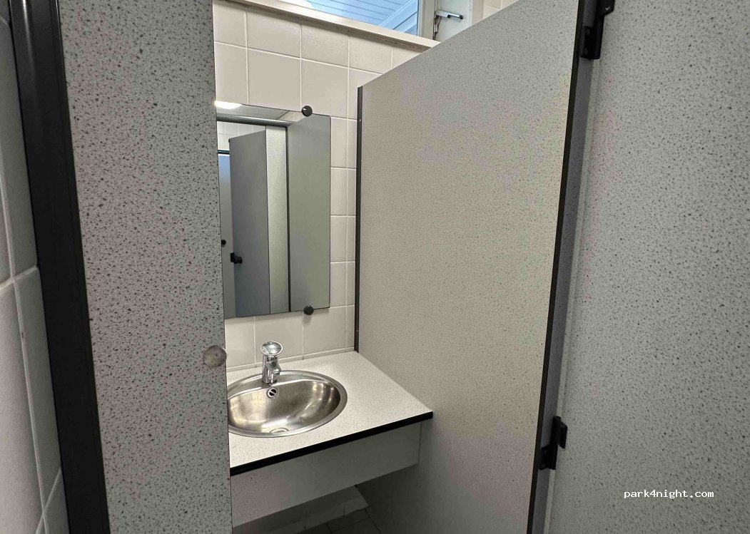 Ruhige und weitläufige Anlage. Strom war kein Problem. Es gab mehrere Duschen (abschließbare, grosse Kabinen mit zus. Waschbecken. Toiletten (offens. provis. Toilettenwagen, geschlechtergetrennt). Wenn die Rezeption nicht besetzt ist, ist 24_7 online-Anmeldung über QR Code mgl. Code für das Tor in der Bestätigungsmail (Anhang)grüne Säule Es gibt aktuell Bautätigkeiten in sehr erträglichem Masse.
