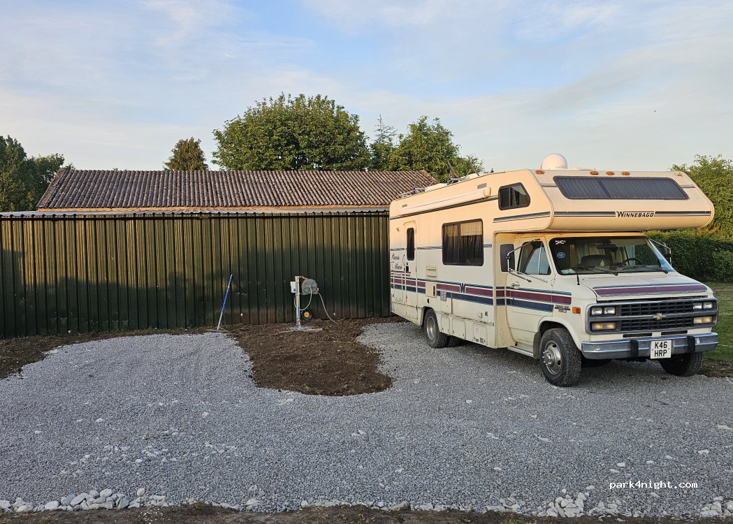 what a beautiful stopover we pitched on a massive field near the chickens surrounded by nature plenty of lovely walks in the area the hardstanding pitches are very well kept just bought half a dozen of the freshest eggs ever we will definitely return it's lovely
