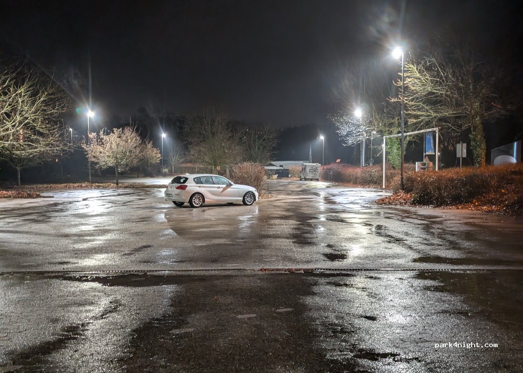 Großer Parkplatz nahe der Autobahn. Höhenbeschränkung 2,90 m.