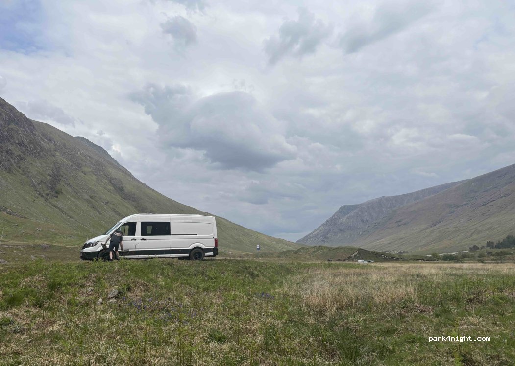 Beautiful spot along the waters edge. Room for one camper van or two at a push. A bit of 4G signal.