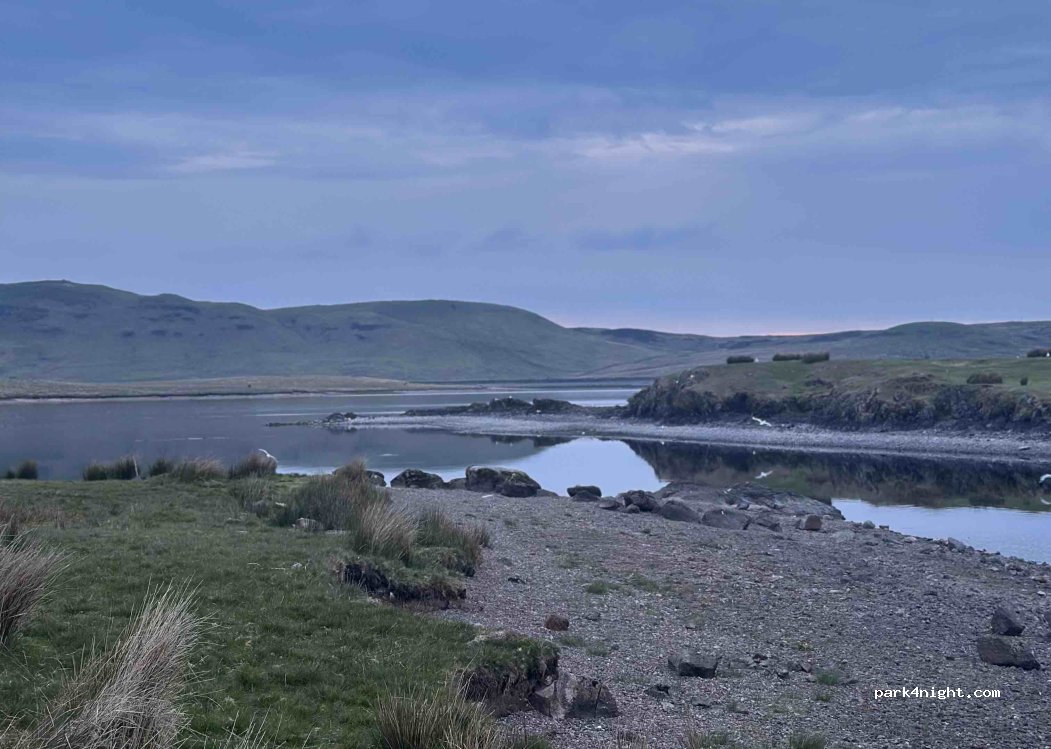 Lieu au bord du lac en bordure de route. Endroit calme avec beaucoup d’oiseaux et une plage pour se baigner ou autre. Route un peu passante mais c’est raisonnable. Zone pas plate, il faut des cales
