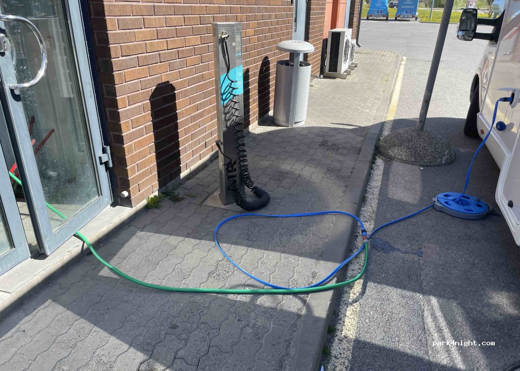 Merci beaucoup pour cette possibilité de prendre de l'eau. il faut juste brancher votre tuyau avec le bon adaptateur que tout voyageur doit avoir. debit correct. l'intérieur de la station est très propre, les toilettes sont très propres aussi. vous pouvez acheter à manger et trouver quelques produits d'utilité.