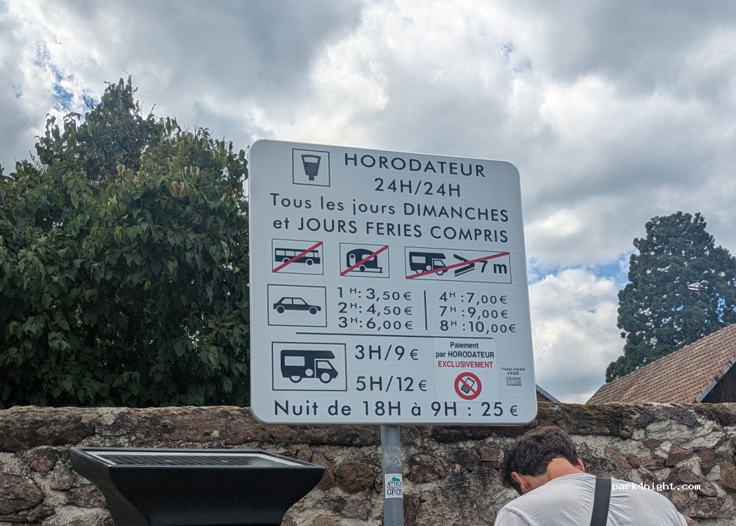 Si le tarif est exhorbitant et que le stationnement est presque impossible, nous ne sommes pas prêts de nous y rendre. De plus il paraît que les camping-cars sont interdits. Dommage pour les commerçants ! Nous irons dépenser à Ribeauvillé ou ailleurs.