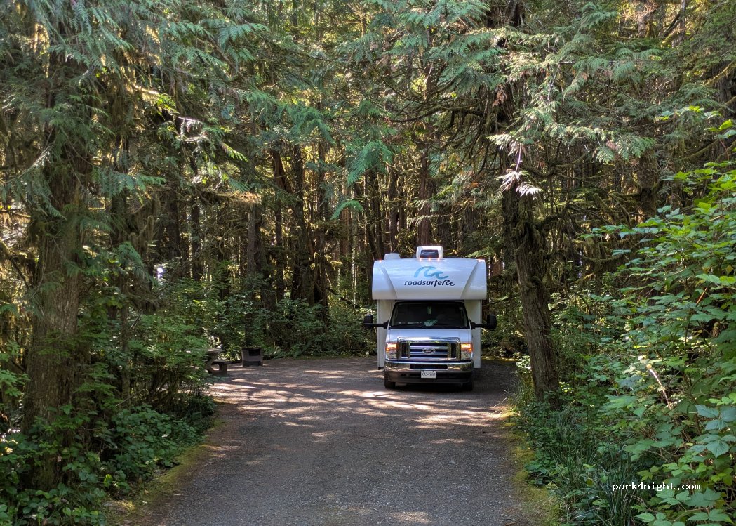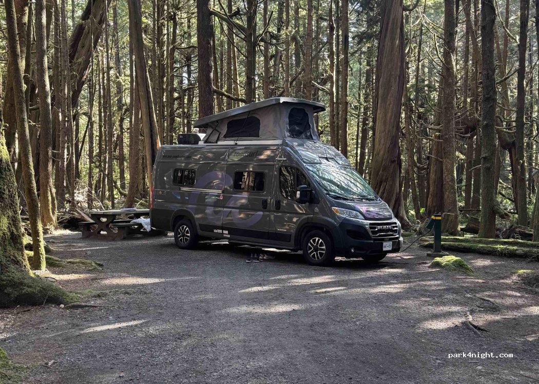 Great camp for relaxation in the middle of the Rainforest with spacious sites. Full service for 27 CAD per night including services: electricity, shower, toilets. sink, drinking water, picnic tables, dump, waste fire pit. Access to the beach 100m free.