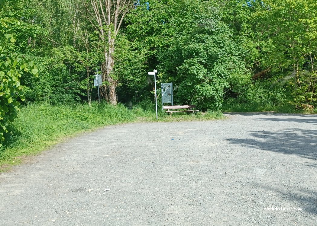 Kleiner Parkplatz direkt am See. Scheint auch für eine Übernachtung geeignet. Kein Verbot für Camper/Reisemobile.