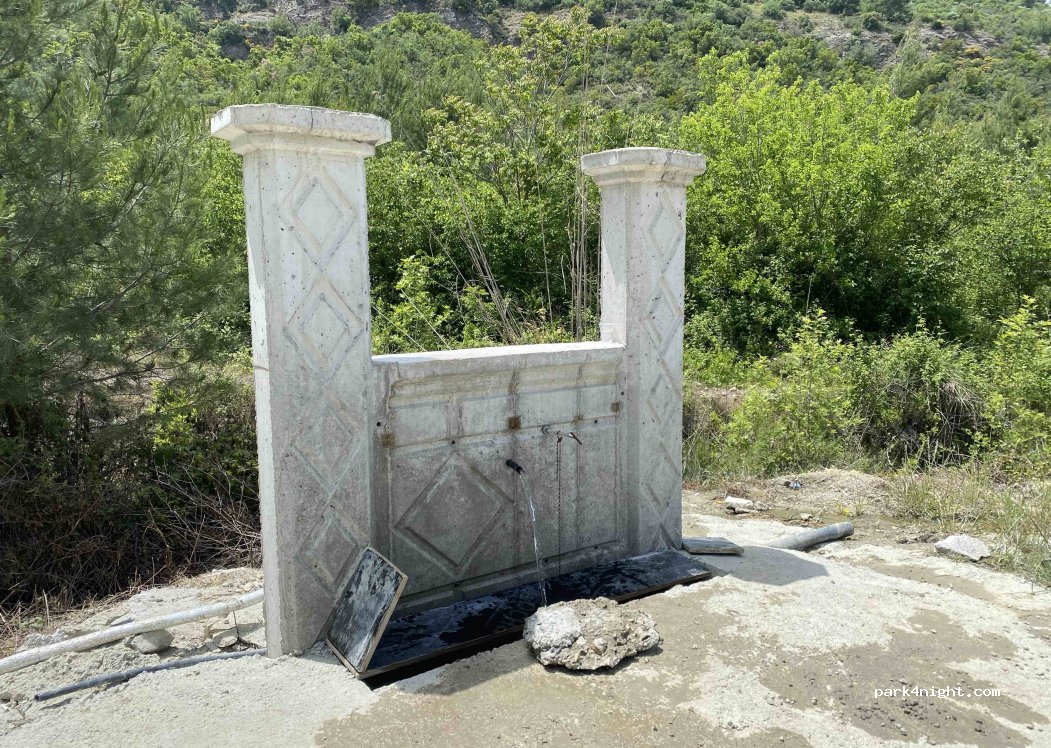 A spot with clean drinking water, recommended by locals. Right on the road, with easy parking. A powerful water jet.