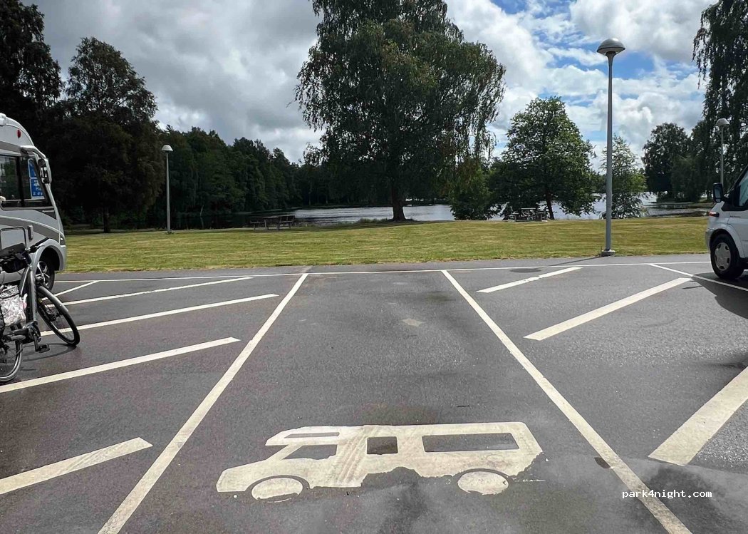 Lovely parkup for an overnight. On the lake with gardens for nice walks and 20 mins walk to town centre. Toilets, fresh water, black waste disposal.