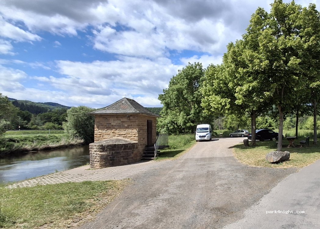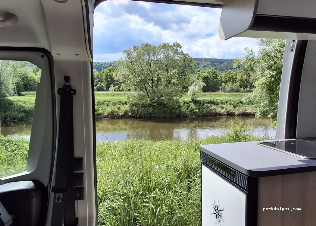 Einfacher, zweckmäßiger Stellplatz direkt an der Werra und dem Radweg. Durch die nahe Bundesstraße und Eisenbahnlinie jedoch sehr laut.