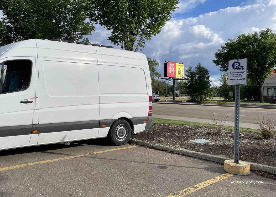 Free parking for campers on designated parking spots in the south-west of the lot. Important: You have to register online on the website of the Kingsway Mall and then grab a parking permit from the Guest Services in the mall. But it is free!