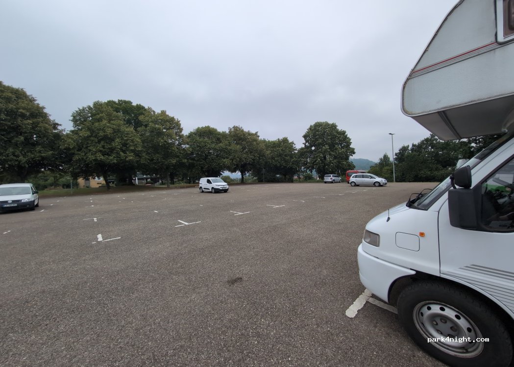 This is just a public parking lot that allows motorhome parking for free. There are signs with a picture of a motorhome to follow to find it. It was very quiet overnight and many space are level. We came here by mistake because we were heading for the other park4night a few blocks away. If you are looking for just someplace to park overnight, this spot is perfect. There is also a walking/bike path.
