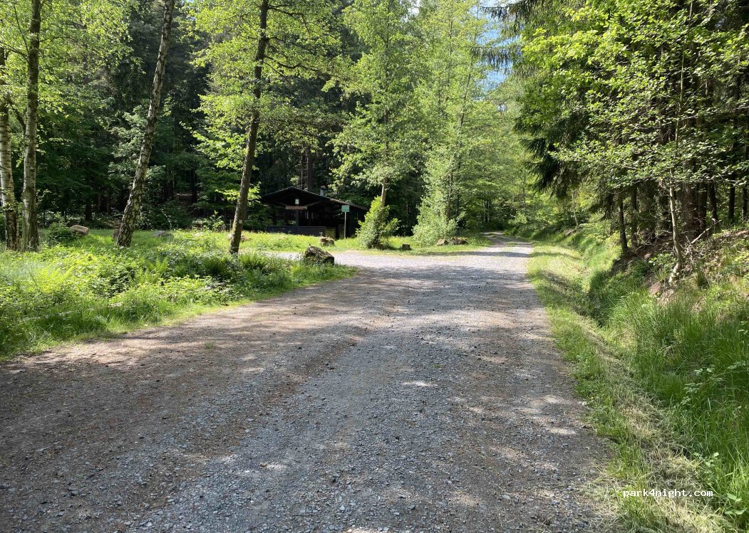 Kleiner Waldparkplatz direkt an einem Bachlauf