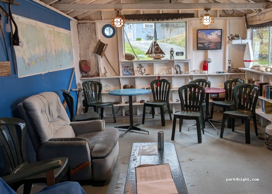 Ein charmanter, heruntergekommener Campingplatz am Meer, umgeben von Inseln. Der Platz bietet voll ausgestattete Stellplätze mit Strom und Wasser. Er ist zwar recht teuer, aber es gibt einen Gemeinschaftsraum und eine Feuerstelle.