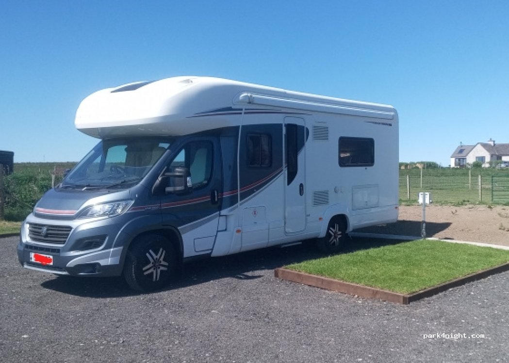 The Windy Roost for day vans and motorhomes (up to 7m). 10A max hookup shared WC / shower facility.