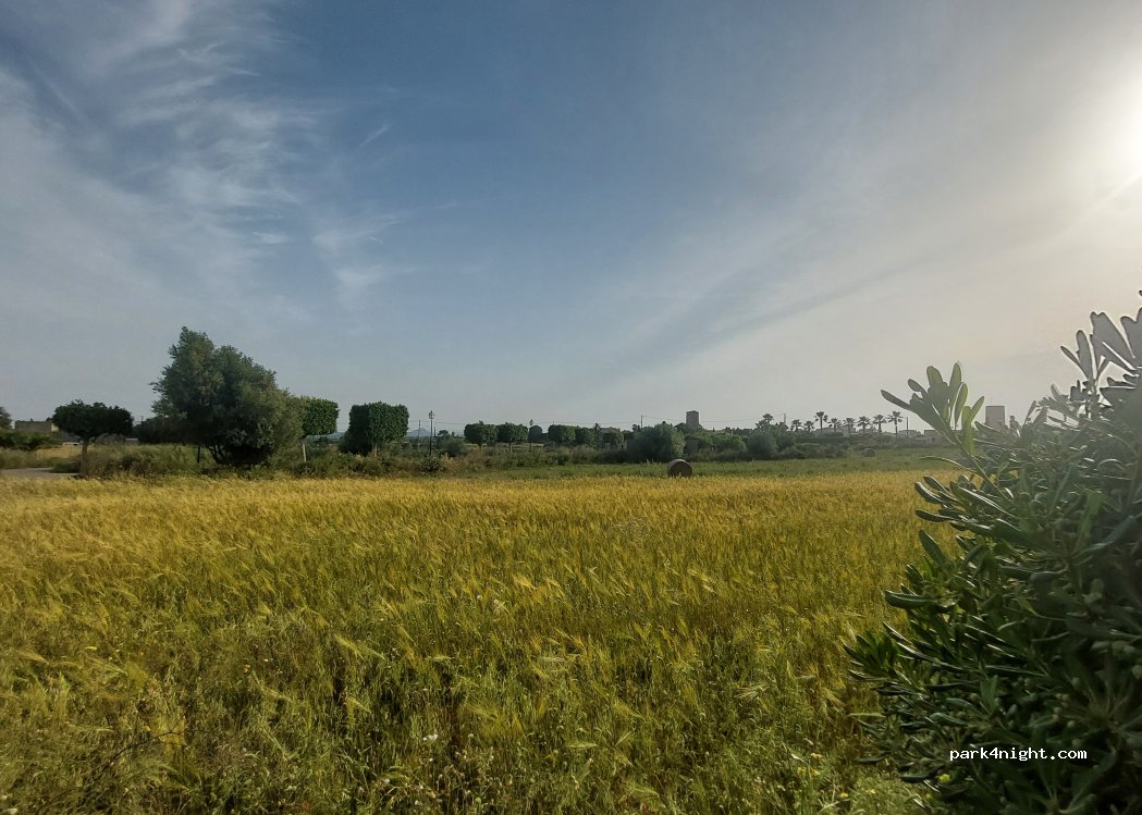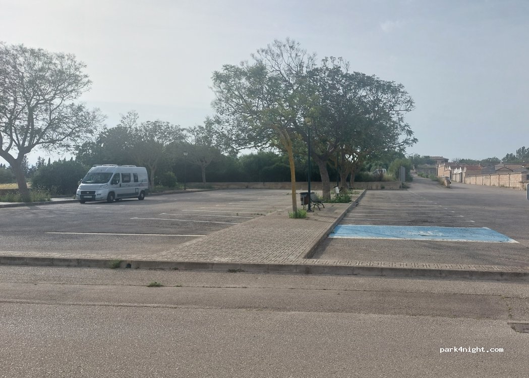 Está al lado del cementerio. No pasamos la noche allí, pero parece un lugar tranquilo. Está junto a la carretera, pero hay poco tráfico. Hay algunos árboles con bancos.
