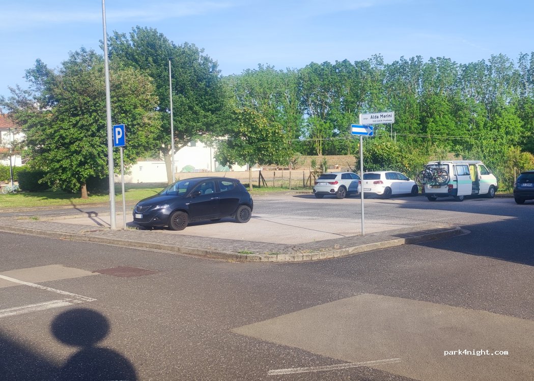 Diversi parcheggi con molti posti disponibili, a volte occupati da camper di residenti di questa zona residenziale.