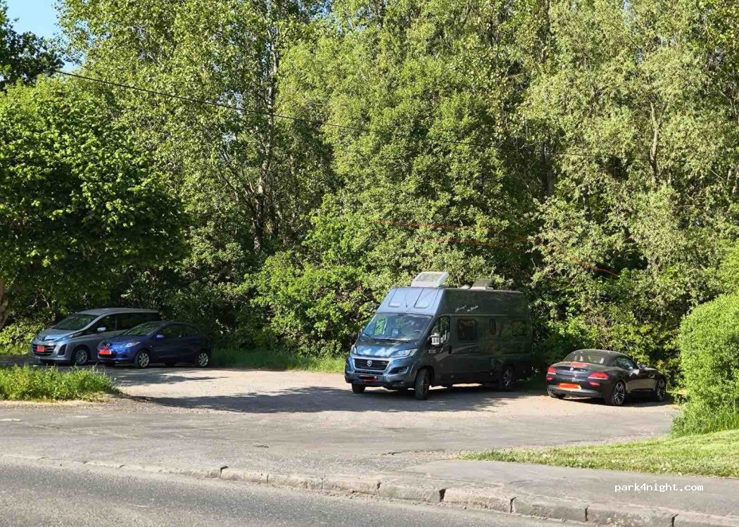Parking for about 5-6 vehicles, slight slope, hardly any traffic at night, perfectly fine for an overnight stay.