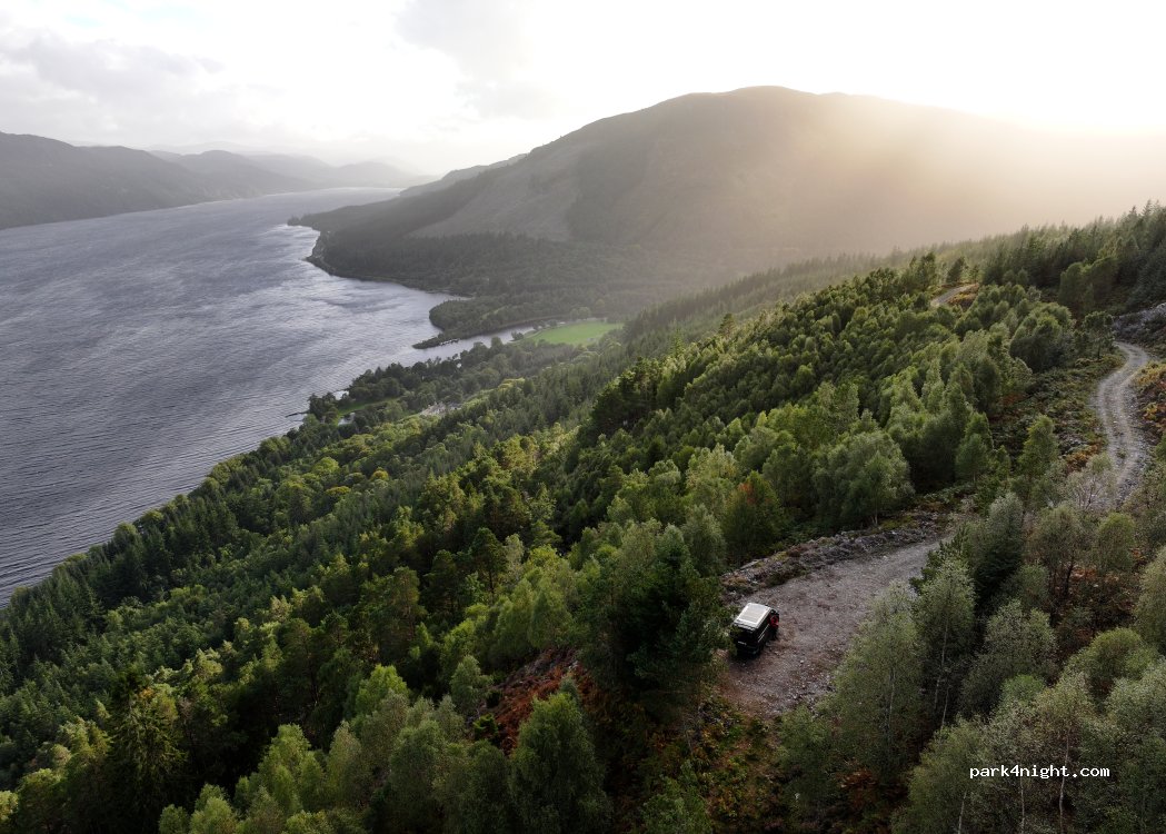 das war der schönste Schlafplatz den wir bisher gefunden haben. wunderschöne Aussicht auf Loch Ness. allerdings wirklich nur mit 4x4 befahrbar! nicht für über 6m empfohlen, die Fahrt dahin ist ein schönes Abenteuer für Gelände erfahrene
