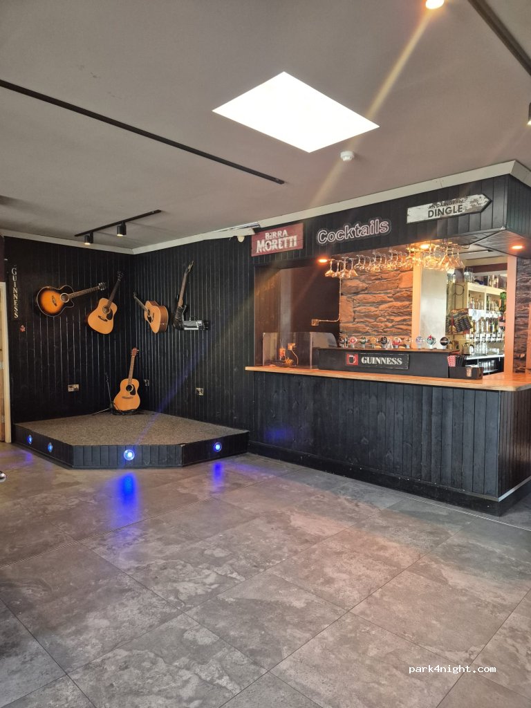 It’s a pub car park with amenities. Guys are friendly but booking is a pain. Luckily we arrived early and there was space. Filled up very quickly. Noisy at night. We thought €40 was steep for a pub car park! Price you pay for visiting Dingle or parking on the street……..