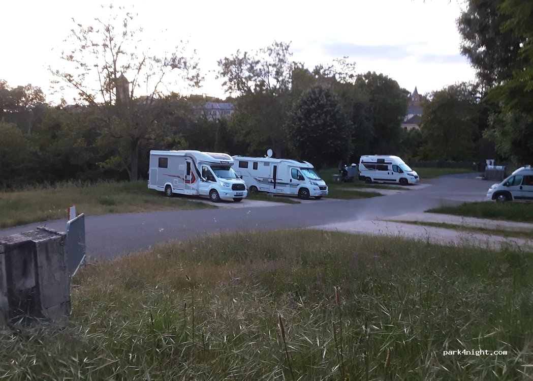 Aire communale au pied de la ville , emplacement individuels avec branchement électrique et eau gratuits . Certains emplacements sont en pente mais avec les cales ça le fait .un grand merci à la commune pour ce lieu .