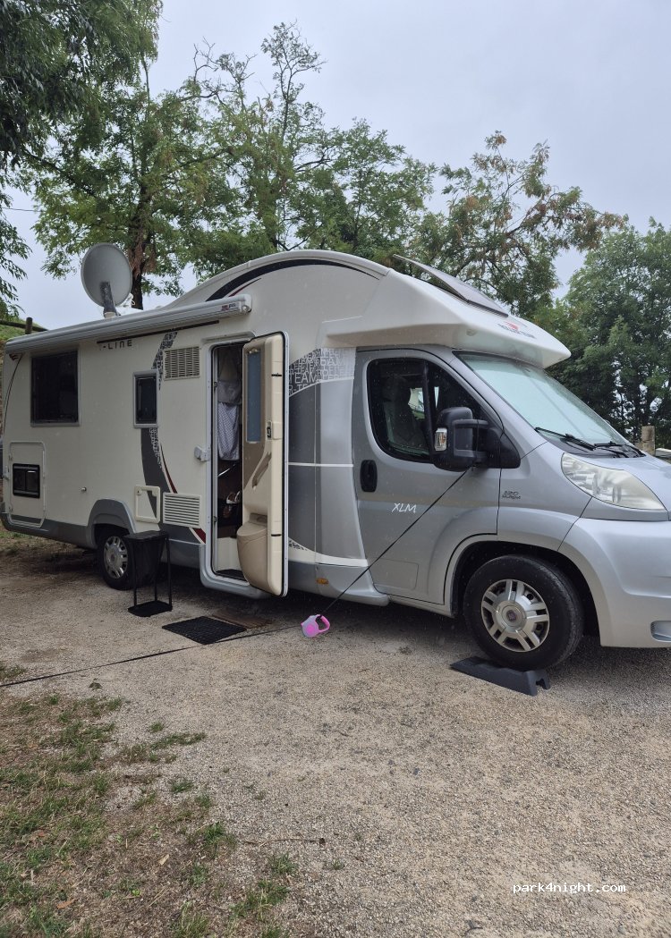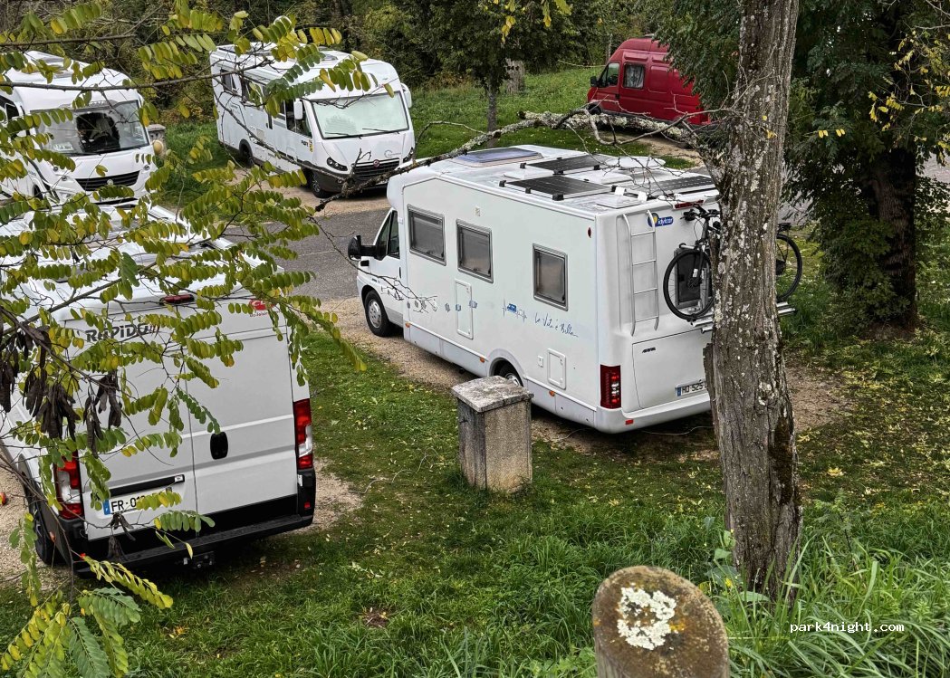 Endroit calme et ombragé près des commerces. 10 emplacements délimités avec eau et électricité gratuites. Merci à la municipalité. !!! L’électricité se coupe la nuit. Il faut rebrancher le matin.